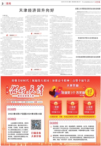 从账面看,2023年天津一般公共预算收入增长9.8%,市管国企利润增长14.4%,民营经济税收增长26.1%;从市面看,企业预期企稳,消费市场“热辣滚烫”;从人面看,就业稳定增长,居民人均可支配收入增长4.7%;从基本面来看,战略机遇突出、科教优势明显、产业基础雄厚、生产要素齐全的天津,前景依然可期。