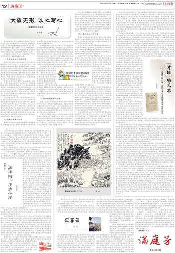石涛讲:“尺幅管天地山川万物而心淡若无者,愚去智生,俗除清至也。”梁斌先生用“若无”之心去营造其作品中的心理空间,这是超越所谓散点透视而进入更深层次的一种时空境界。管天地山川万物者,心也。尺幅大小,无非经营;心之所含,则其大无外,其小无内,既可散于尺幅,又能游于万仞。