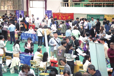 4月14日下午,天津市第三中学高招咨询会现场人头攒动、气氛高涨。红桥区的高三毕业生家长,甚至包括部分高一、高二的学生、家长纷纷出现在咨询会现场。众多知名高校严阵以待,其中包括中国人民大学、北京师范大学、同济大学、北京理工大学、南开大学、天津大学等著名985高校14所,中国政法大学、对外经济贸易大学等知名211院校10所,以及在津高校11所、多所部队院校和中外合作办学高校,共54所高校的招生咨询工作人员积极与广大高中学生、家长沟通。