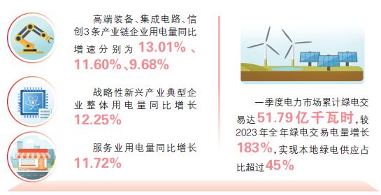 天津多个行业的用电量不仅更多,也更绿更环保了。数据显示,一季度,我市电力市场累计绿电交易达51.79亿千瓦时,较2023年全年绿电交易电量增长183%,实现本地绿电供应占比超过45%,体现出全市企业绿色电力供应之充足及消费需求之旺盛。