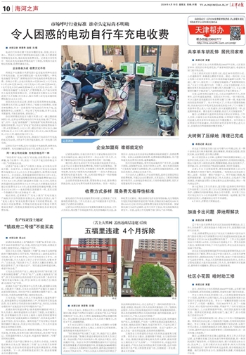 记者在“充电小斑马”小程序上查询,证实杨先生所说不假。在南开区,王顶堤红旗农贸大厅的充电设施收费为每度电1.5元;北方人才保山道院内,收费则为每度电0.9元。在北辰区,双青盛泰园的价格为8小时1.5元。在西青区,津门湖街道观鹭花园充电设施收费在500瓦以下为1元8小时;西营门街道津州花园1元3小时,同样在该街道的裕达家园则为2元8小时;在大寺镇福泉花苑吾骑公社收费为2元6小时;赤龙南街佳和康庭车棚,价格为1.5元8小时……充电价格在各街镇不一样,甚至在同一个街镇的不同小区价格也不一样。