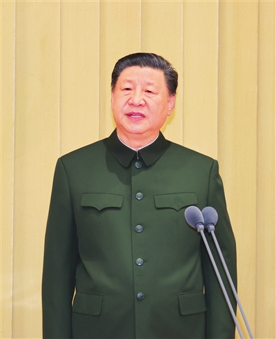 4月19日,中国人民解放军信息支援部队成立大会在北京八一大楼隆重举行。中共中央总书记、国家主席、中央军委主席习近平向信息支援部队授予军旗并致训词。这是习近平致训词。 新华社记者 李刚 摄