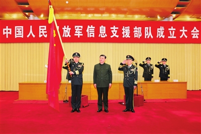 新华社北京4月19日电(记者 梅常伟)中国人民解放军信息支援部队成立大会19日在北京八一大楼隆重举行。中共中央总书记、国家主席、中央军委主席习近平向信息支援部队授予军旗并致训词,代表党中央和中央军委向信息支援部队全体官兵致以热烈祝贺。他强调,要贯彻新时代强军思想,贯彻新时代军事战略方针,坚持政治建军、改革强军、科技强军、人才强军、依法治军,聚焦备战打仗,按照体系融合、全域支撑的战略要求,锐意进取,扎实工作,努力建设一支强大的现代化信息支援部队。