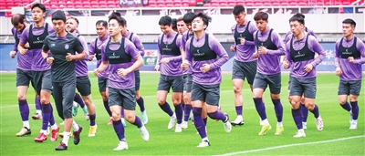 本报讯(记者 顾颖 摄影 时龚)昨天下午,天津津门虎队在武汉进行了适应场地训练,今天19:35,他们将客场迎战武汉三镇队。中超前7轮比赛过后,津门虎队积11分排名第6位,武汉三镇队积5分排名第12位。