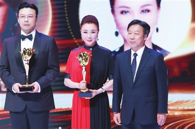 曾昭娟(中)在颁奖仪式上。 图片由天津评剧院提供