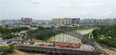 4月28日,随着最后一束锚固钢绞线和吊杆安装完成,由中铁十八局承建的四川省江油市普照片区城乡一体化项目重点控制性工程——平通河大桥主体完工,全力冲刺建成通车目标。该项目是四川省重点项目,也是中铁十八局在江油市首个自主设计施工的重大工程项目。 曾海波 杜鹏宇