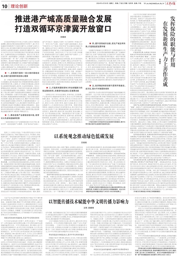 在当前世界面临百年未有之大变局、全球分工格局加速调整、国际经济格局面临重塑的时代背景下,港口作为连通国内和国际两个市场的关键节点,在构建“以国内大循环为主体、国内国际双循环相互促进的新发展格局”中发挥着日益重要的基础性、枢纽性和关键性作用。2019年习近平总书记在天津考察时指出“经济要发展,国家要强大,交通特别是海运首先要强起来。要志在万里,努力打造世界一流的智慧港口、绿色港口,更好服务京津冀协同发展和共建‘一带一路’”,并留下“把天津港建设好”的殷切嘱托。推进港产城融合是贯彻落实习近平总书记讲话精神所实施的重要战略行动,实现港产城的高质量融合发展,需要以天津口岸优势为切入点,打造双循环枢纽核心载体,集聚适港产业,发展临港经济,扩大制度型开放,谱写自我发展、协同发展与共赢发展的新篇章。