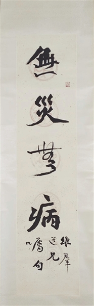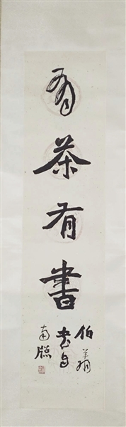 “无灾无病;有茶有书”,此为本文作者撰联,孙伯翔先生书。