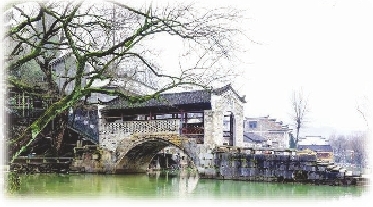 桥下的白泉河,依然清澈。晴和的日子,远远近近总有孩童在水中嬉戏,溪水上停泊的木筏,随风摇动,荡漾着春光,荡漾着柳色,也荡漾着忽隐忽现的时空倒影。久远的老宅,苍苔斑驳,暗绿丛生,门窗旧迹,残痕如梦。它让人想起绣楼上翘首望向窗外的女子和廊桥上挟着油布雨伞怅惘满腹的长衫男子,他们目光交汇的瞬间,山川河流、天地精气,浑然而为一体,褪成遥远的尘世风景。