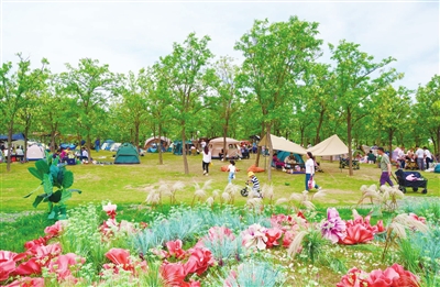 “五一”假期,不少游客来到东丽湖露营野餐、亲近自然。 本报记者 孙立伟 摄