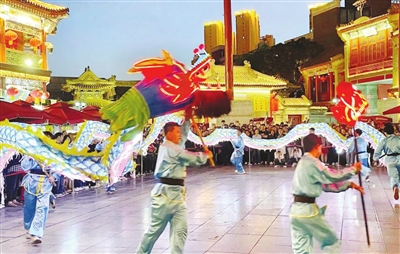 “五一”假期,市级非物质文化遗产项目——“大沽龙灯”亮相首届天津古文化街民俗文化旅游节。 本报记者 胡凌云 通讯员 石乔 刘顺利 摄