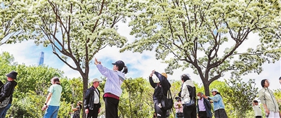 “五一”假期,滨海新区泰丰公园内的流苏树,花开如雪。 本报记者 吴迪 摄