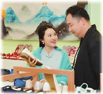 我妻子赵语馨作为非遗文化传承人,曾荣获天津汉服花朝节冠军、2022年中华才艺小姐国际大赛总决赛冠军以及第四届北京汉服文化节形象大使及“人气王”的称号。她在短视频平台上开设了“长荣鞋业语馨”的账号,拍摄了很多推广汉服文化和绣花鞋的短视频。目前我们通过新的运营模式达到了一定的推广效果、扩大了客户群体,也提高了产品销量。通过电商、网络直播的推广,让很多人发现了长荣绣花鞋的存在。