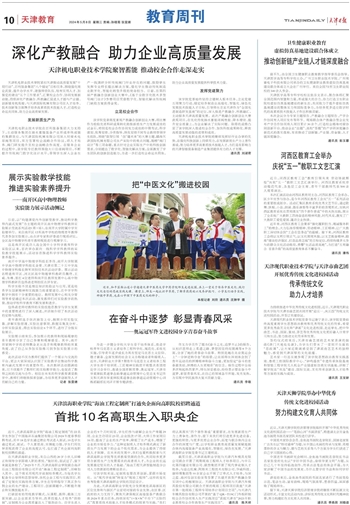 截至目前,天津滨海职业学院与天津汽车模具有限公司联合开展了两期现场工程师人才培养项目,与中石化第四建设有限公司、联想集团开展了现代学徒制人才培养,与益达机械、阿斯米工程技术有限公司、华威科技、康师傅集团等10余家企业开展了订单式人才培养,与深之蓝、海河信创实验室等签署了共建开放型产教融合型实训中心的框架协议。天津滨海职业学院与天津汽车模具股份有限公司联合开展的现场工程师项目获批“天津市第一批现场工程师专项培养计划项目立项”,与天津汽车模具股份有限公司开展的“基于QR-T19C门外板研制校企合作协同育人生产实践项目”获批天津市“2023年职业教育校企合作典型生产实践项目”。 通讯员 陈天祥