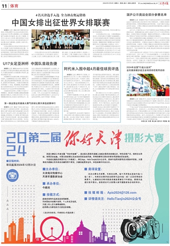 本报讯(记者 梁斌)据中国排球协会消息,中国女排昨天从北京出发前往巴西,征战2024年世界女排联赛,4名天津渤海银行女排队员李盈莹、袁心玥、王媛媛、王艺竹入选16人大名单,球队将参加于北京时间5月15日至20日举行的里约热内卢站比赛,依次与韩国队、美国队、加拿大队、塞尔维亚队交锋。