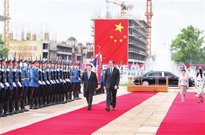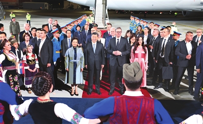 5月的贝尔格莱德,阳光明媚。塞尔维亚大厦前,中塞两国国旗迎风飘扬,仪仗队威武雄壮。习近平和夫人彭丽媛乘车抵达时,塞尔维亚总统武契奇和夫人塔玛拉在下车处热情迎接。