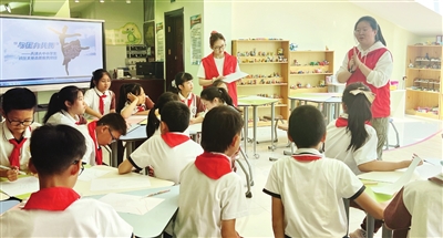 当天上午,天津外国语大学红十字会的志愿者代表走进昆明路小学,为学生们带来一场“与压力共舞”的减压团辅志愿服务活动,通过“开心印手掌”、分析优缺点的“成长苹果树”等一系列趣味十足的互动游戏,帮助学生们发掘自身的闪光点,让其学会接纳自己,同时建立相互帮助的氛围,感受支持的力量,培养成长型思维,增强心理韧性,助力小学生塑造阳光心态。