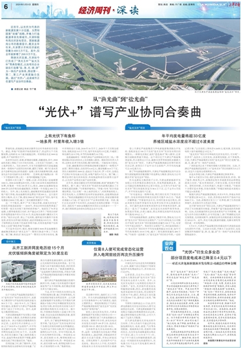 在开展“渔光互补”项目之前,天津长芦海晶集团曾专门评估了光伏板遮挡对制盐、养殖等产量可能造成的具体影响。比如,光伏板遮挡阳光会对卤水蒸发产生不利影响。通过与合作方综合测算后,针对项目施工,除了明确限定光伏支架高度、光伏板间距外,该集团还将光伏板的遮光率控制在50%以内。此外,其还可通过配套的储能、电解水制氢等项目进一步实现增收。