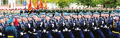在俄罗斯首都莫斯科,士兵列队走过红场。 新华社发