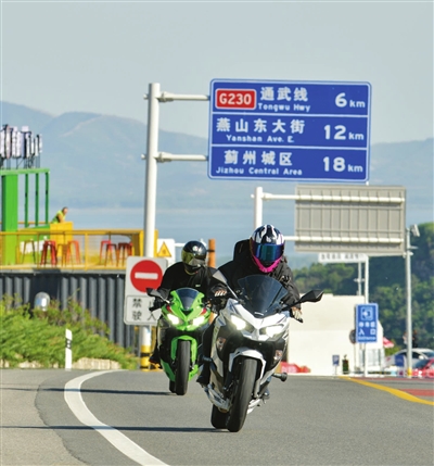 今年“五一”,迎来了该路提升改造后的第一个旅游高峰,车流和游客量均“井喷”。记者一路采访,看到、听到最多的是游客们对津围北二线和周边环境的赞扬,特别是体验彩虹公路、彩虹隧道、观景台、咖啡厅和机车驿站后的肯定。