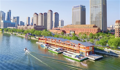 日前,一座新建的双层海河游船码头亮相河东区海河东路与北十五经路交口,目前主体施工已经全部完成。