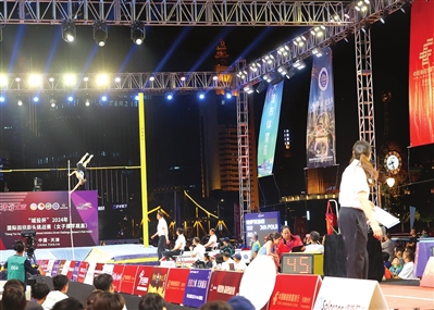 本报讯(记者 苏娅辉 摄影 孙震 崔跃勇)炫酷的灯光,动感的音乐,热情的观众,伴随着习习微风和静谧流淌的海河,作为天津市“体育赛事进景区、进街区、进商圈”活动之一的“城投杯”2024国际田径街头挑战赛(女子撑杆跳高)昨晚在津湾广场开赛。15名亚洲优秀女子撑杆跳高选手,让大众近距离领略了街头田径的魅力与活力。亚洲纪录保持者李玲以4.60米毫无悬念夺冠,带着信心奔向巴黎奥运会。