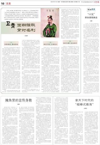奉公守法、从不在培植个人势力上用心思的卫青,真正做到了“居上位而不骄,在下位而不忧”,最后得以善终。在卫青身上所体现的高度的纪律观念、规矩意识,以及不计名利的恢宏气度,无不展现出一代名将的人格魅力,历千年而弥新。