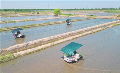 西青区王稳庄镇抢抓农时开展水稻插秧作业。今年该镇小站稻主要种植“天隆619”“津育粳22”等品种,全程采用遥感监测、智能灌溉、变量施肥等科技种植技术,为优质小站稻的丰收打下坚实基础。 本报记者 潘立峰 通讯员 张馨月 摄