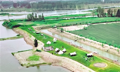 近年来,我市大力发展生态休闲观光农业和乡村旅游,位于西青区辛口镇第六埠村的生态六埠景区利用独特的自然水资源建成六埠水岸露营公园。该公园占地面积约6000平方米,美丽的自然景观与丰富多彩的体验项目为游客提供了一个享受田园乐趣的理想之地。