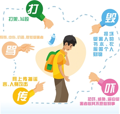 4.网络欺凌,在网上对同学进行侮辱、诽谤、恶意损害形象等行为。
