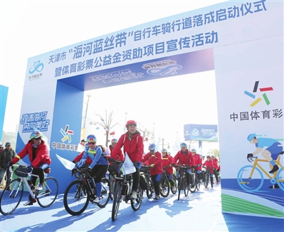 “海河蓝丝带”是一条环绕海河的非竞速自行车骑行道,也是天津市2023年20项民心工程项目之一,由天津市体育彩票公益金重点支持建设,旨在塑造独具天津特色的健身带、经济带和景观带,让全民健身与城市魅力深度融合,引领倡导广大市民绿色出行、健康生活。为天津构建更高水平的全民健身公共服务体系又增添了浓重的一笔。