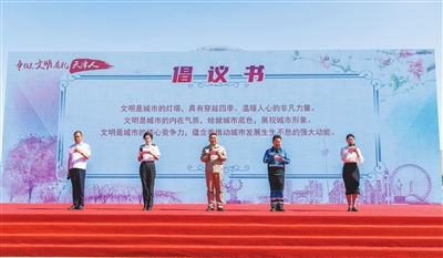 日前,2024年深化“争做文明有礼天津人”主题活动启动仪式在天津文化中心举行。仪式现场,为2023年“争做文明有礼天津人”主题活动中表现突出的先进单位和个人颁奖,并为“争做文明有礼天津人”文明先锋授旗。时代楷模张黎明、全国文明家庭代表党群、中国好人闫璐璐、天津楷模成卫东、天津好人穆瑞利等先进典型代表宣读了《2024深化“争做文明有礼天津人”主题活动倡议书》。