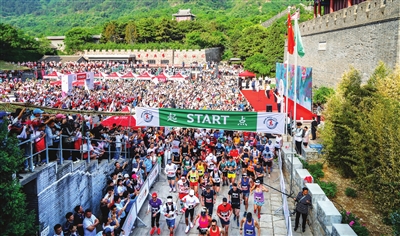 昨日,第21届中国·天津黄崖关长城国际马拉松旅游活动举行,近3000名马拉松爱好者参与角逐。 本报记者 王倩 潘立峰 通讯员 黄梦婷 王金一 摄