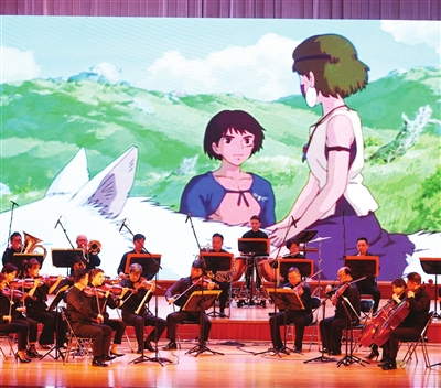 本报讯(记者 张帆 摄影 姚文生)昨天,“久石让&宫崎骏动漫经典视听音乐会”在天津大礼堂上演。天津交响乐团·天骄OPEN室内乐团的演奏家带来了宫崎骏动漫作品中的经典乐曲,带领观众重温儿时记忆。