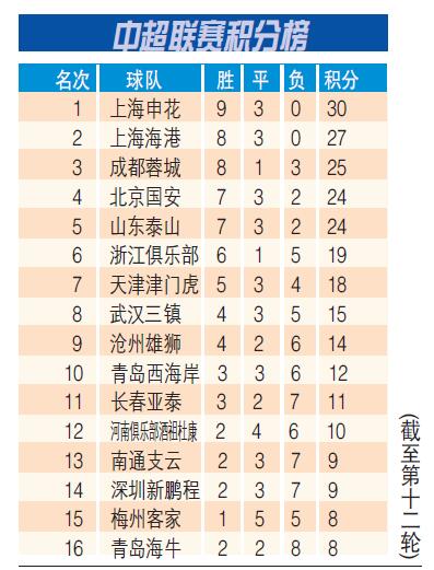 中超联赛积分榜