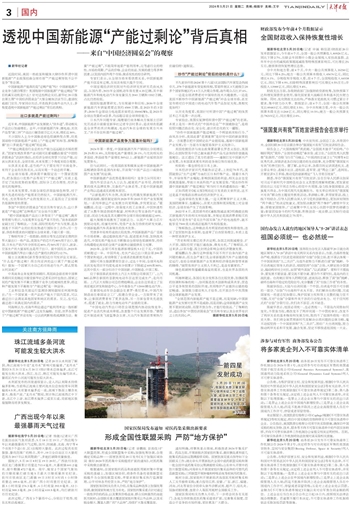2024年第一季度,中国新能源汽车产销同比分别增长28.2%和31.8%,太阳能电池产量增长20.1%,与光伏相关的多晶硅、单晶硅等产量增长50%以上,新能源产业延续良好发展势头。