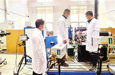 中国民航大学热致振动试验间,教授在给学生们讲解试验要点。 本报记者 胡凌云 通讯员 潘晓骞 摄