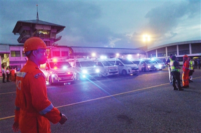 图为5月21日,救护车聚集在泰国曼谷素万那普机场外。 新华社发