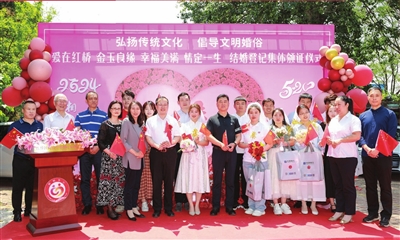 据统计,5月20日、21日两天,全市分别办理结婚登记1399对、1054对,举办集体婚礼3场、集体颁证40多场,其他特色活动包括联谊交友、家风家教宣传、婚俗小市集等共计10余场。