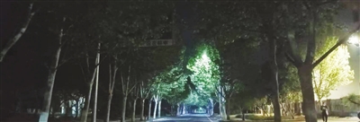 5月6日晚8点多至11点多,记者在该片区实地调查,学府道、公学道、书院道等道路都只亮了半幅路灯,海泰路的路灯被树木遮挡,导致路上的能见度不高。到晚上11点后路灯全关闭了,整个片区一片漆黑。只有黑利伯瑞国际学校门前的照明灯照亮公学道前一小段道路。