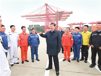 22日下午,习近平首先来到日照港考察。日照港是重要的能源和大宗原材料中转基地,近年来推进智慧化、绿色化建设,建成顺岸开放式全自动化集装箱码头。习近平听取山东省港口发展建设和日照港规划布局等情况介绍,并察看全自动化集装箱码头作业场景。他说,日照港是改革开放后新建的港口,近年来推进科技创新,将传统港口改造升级为现代化港口,不仅货物吞吐量跻身全国前列,还积累了通过传统产业改造升级发展新质生产力的经验,值得肯定。习近平亲切慰问港口科技工作者、运营人员、航运人员,希望大家再接再厉、继续奋斗,推动日照港管理运营更上一层楼。