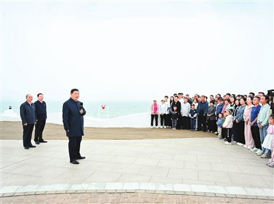 22日下午,习近平在日照市阳光海岸绿道同市民和游客亲切交流。 新华社记者 谢环驰 摄