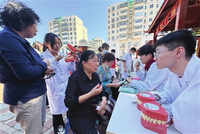 近日,天津医学高等专科学校师生走进河西区金海湾社区为居民提供视力检测、白内障等眼疾知识分享;解答牙齿健康问题,分享日常口腔护理知识。同学们用学到的专业知识服务社会。