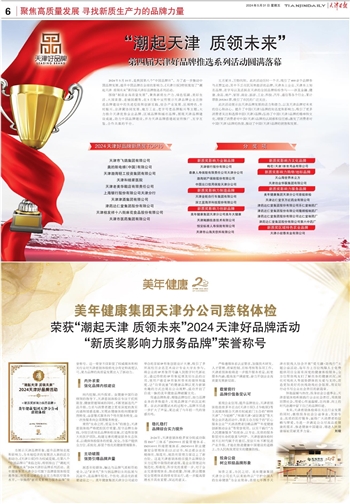为展示天津品牌形象,提升品牌知名度和影响力,为本地经济的发展注入新的活力和动力,《天津日报》作为权威党媒,在第八个“中国品牌日”来临之际,特别推出了“潮起天津 质领未来”2024天津好品牌系列活动。美年健康集团天津分公司旗下品牌慈铭体检受邀参加,并凭借过硬的专业实力和医疗服务水平,一举摘得“新质奖影响力服务品牌”荣誉称号。这一荣誉不仅彰显了权威媒体和相关行业对天津慈铭体检的充分肯定和高度认可,更为品牌的高质量发展注入了新动力。