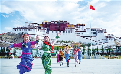 6月1日,小朋友们在拉萨布达拉宫广场玩耍。 新华社发
