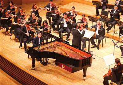 本报讯(记者 张帆 摄影 姚文生)昨天,“中银之声”2024天津音乐节系列演出,由天津歌舞剧院管弦乐团携手青年指挥家林木森、少年钢琴家杜沛达带来的《全部勃拉姆斯系列交响音乐会三》在天津大剧院音乐厅上演。