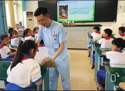 市胸科医院高血压预防护理科普基地医护人员走进和平区劝业场小学,为师生带来一场中医药传统文化科普活动。 摄影 屈志萍