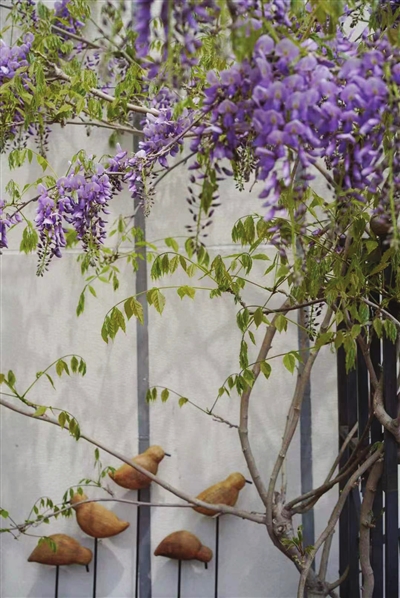 在通江街望“江”,虽望不到江,但是却看到一堵老墙上爬满了凌霄花。老墙斑驳的风痕水渍如地图,凌霄花娟秀、艳丽,一袭轻盈,随风灵动,姗姗可爱。老街、老墙,也因有了凌霄花这种植物而立显生机。