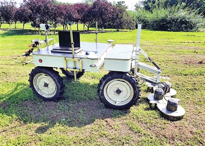天津万园农业机器人有限公司研制的多功能机器人在修剪草坪。 照片由受访者提供