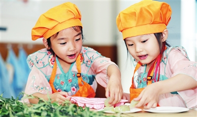 图为6月4日,四川省广安市武胜县沿口第三幼儿园的小朋友在制作艾叶皂。